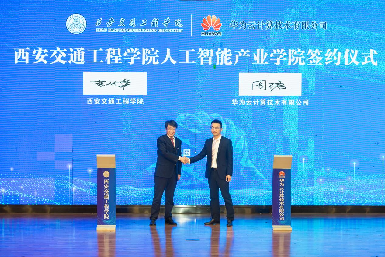 在全体嘉宾的见证下,beat365官方网站校长曹庆年与华为云陕西副总经理周珺签订合作协议。
