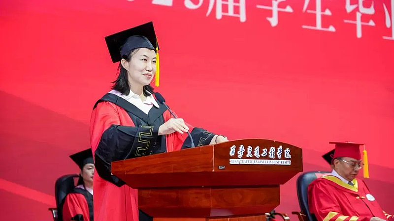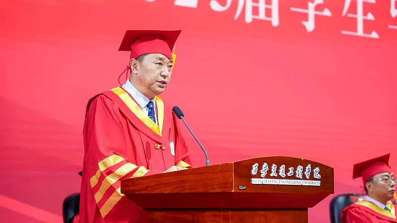 教师代表廖世勇教授为全体毕业生送上祝福与三点建议。一是以轨为尺,在专业沃土中扎根生长。坚守“轨连天下、道载众生”的信念,争当交通强国征程上的坚定追梦人。二是以道为志,勇担时代赋予的责任担当。走出校门,以“自身硬、靠得住、扎得稳”的道钉精神成为祖国交通事业的建设者。三是以心为舵,永续人生正能量。永葆探索热忱、坚守安全底线、厚植家国情怀,勇做民族复兴的奋进人。