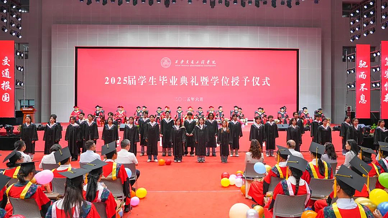 誓言铿锵,信念如磐。全体毕业生举起右拳庄严宣誓。典礼尾声,校歌《创造新时代的辉煌》旋律如常,全体毕业生用歌声表达着对母校浓浓的眷恋之声。