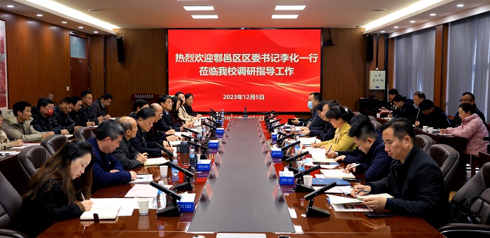 鄠邑区委办公室、发改委、投资工信局、资源规划局、甘亭街道、沣京工业园等单位相关负责人,beat365相关处室、二级学院负责人、教师代表一同参加了调研会。
