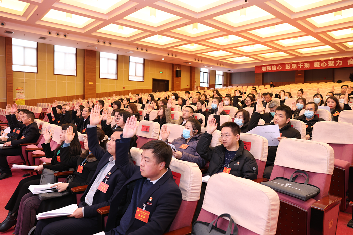 大会闭幕式在学术报告厅举行,党委书记李萍主持会议并讲话。代表们以举手表决的方式,分别通过了两委工作报告决议。