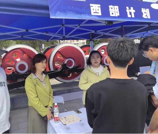 党委副书记兼工会主席张庆生(左一)了解西部计划政策