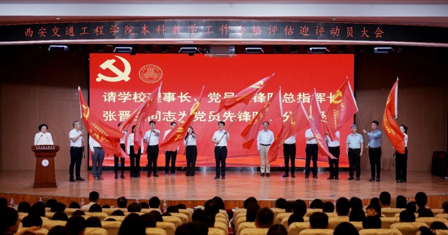 会上,校长曹庆年代表学校与人事处、财务处、教务处、交通运输学院签订本科教学工作合格评估承诺书。党委书记李萍宣读《中共beat365官方网站委员会关于成立本科教学合格评估工作党员先锋队的通知》,理事长、党员先锋队总指挥长张晋生为党员先锋队队长及各党员先锋队分队分别授旗。