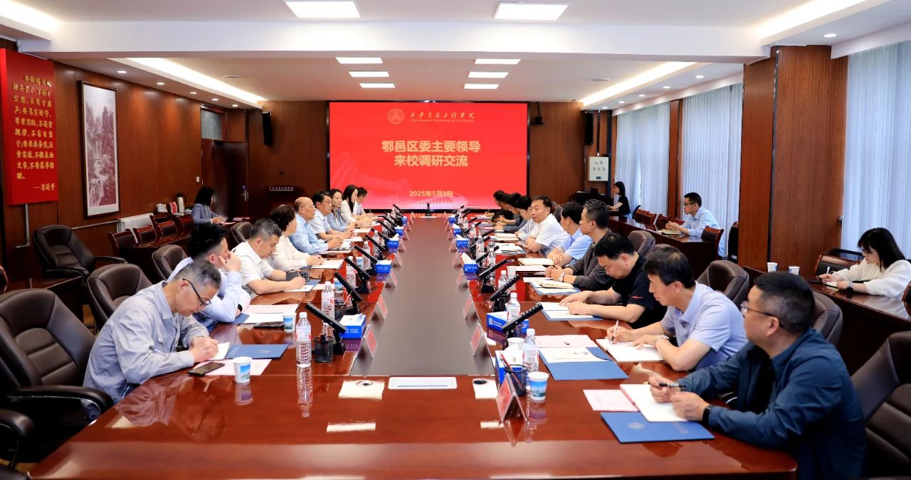 理事长张晋生对李化一行来校调研表示欢迎,对鄠邑区委、区政府长期以来对学校建设发展的关心支持表示感谢;理事会办公室主任千红汇报了学校总体规划情况及需要鄠邑区协调解决的事项;校地双方围绕学校基建项目及未来远景规划、校地合作、产教融合、意识形态、安全稳定等方面进行了深入交流。