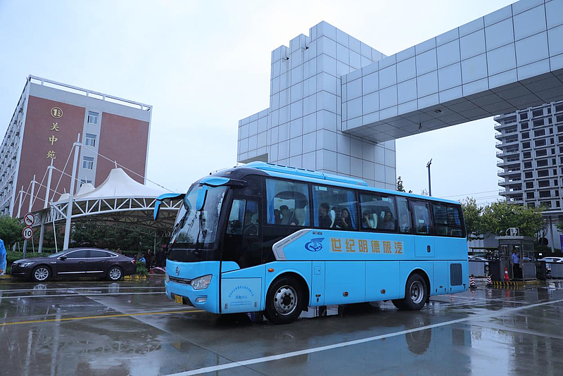 清晨6点,校门口的接站点已人头攒动
