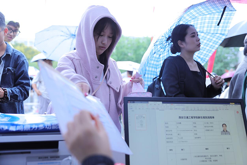 “同学们,这边请!我们是西安交院的迎新志愿者!”