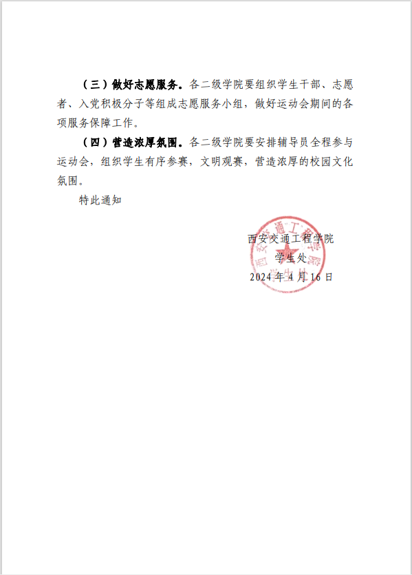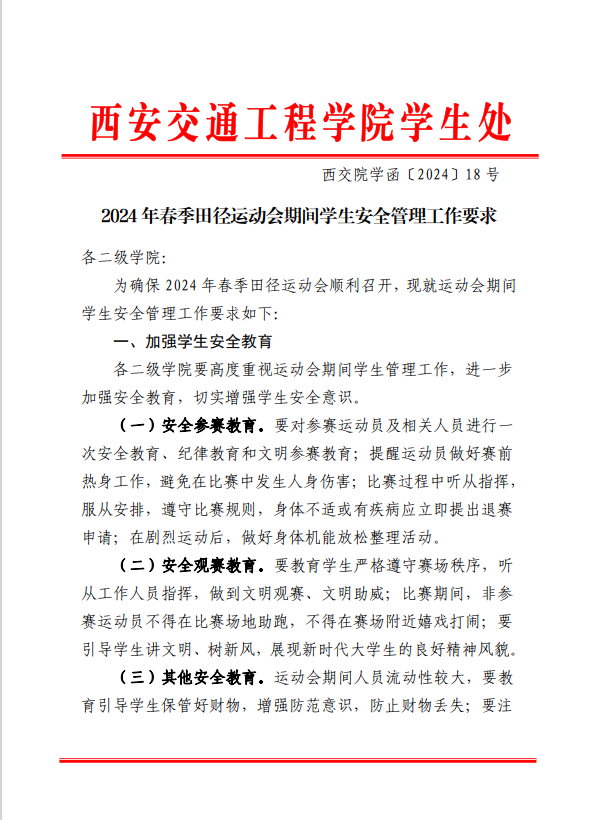 2024年春季田径运动会期间学生安全管理工作要求