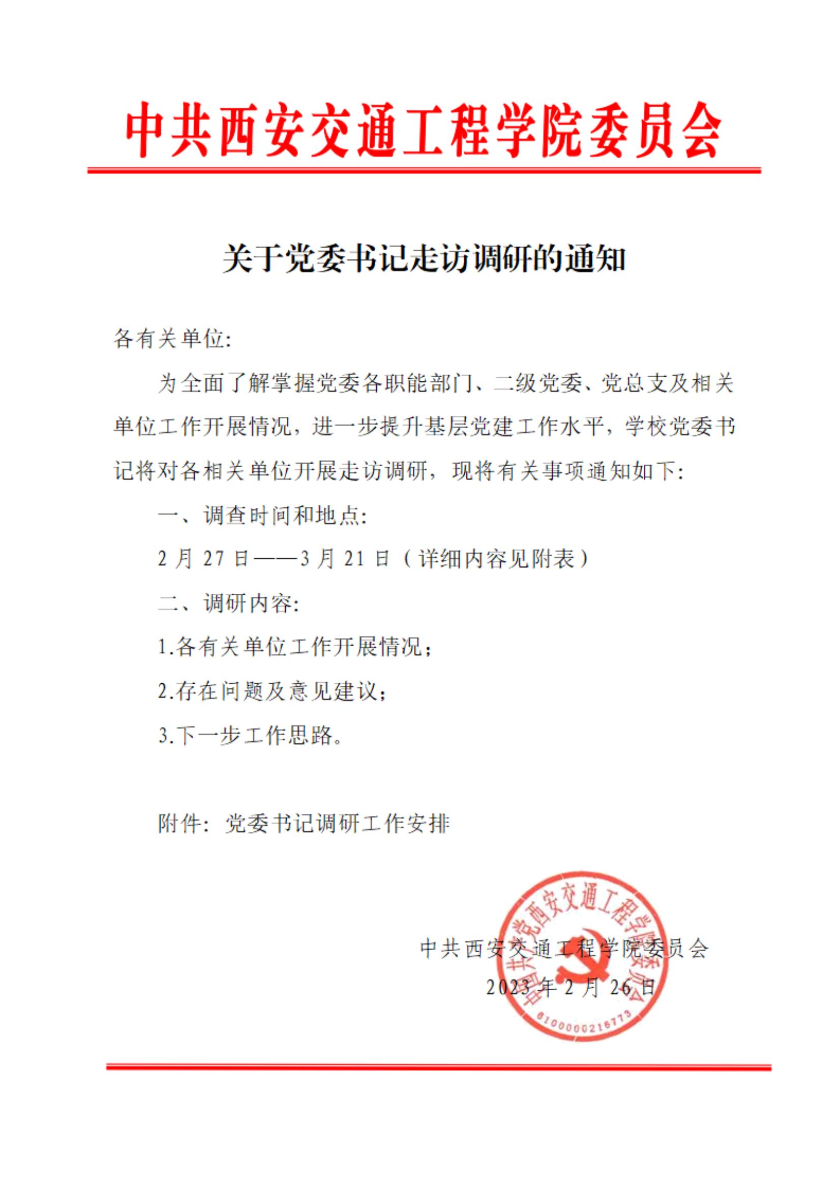 关于党委书记走访调研的通知