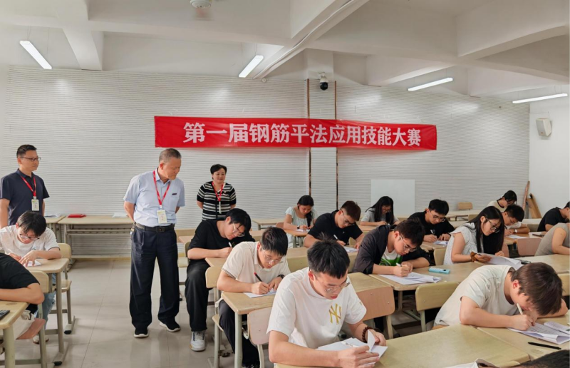 大赛以“提升专业技能,强化知识应用,选拔优秀人才”为宗旨,紧密对接行业核心需求。比赛形式设计严谨且富有挑战性,采用“闭卷笔试”方式,重点考查学生在“钢筋平法识图与钢筋工程量的精确计算”方面的理论基础与实际应用能力。试卷内容涵盖结构施工图识读、钢筋构造要求理解、下料单编制等关键知识点,全面检验了参赛选手的专业素养和解决复杂工程问题的潜力。考场内秩序井然,选手们全神贯注,争分夺秒,展现了扎实的知识储备和严谨的工程思维。