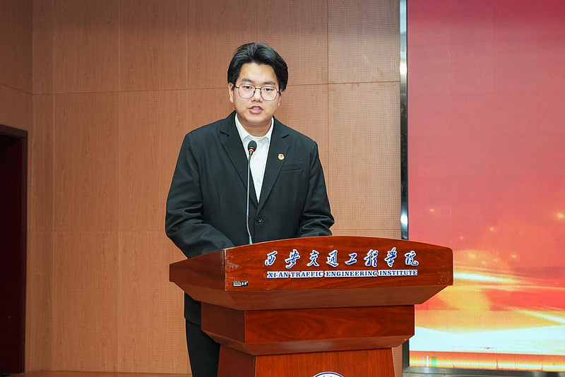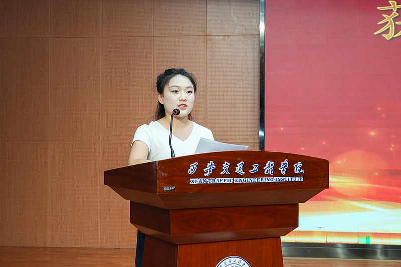 获奖师生代表分享奋斗故事与心得感悟;获奖学生渠超杰宣读倡议书。
