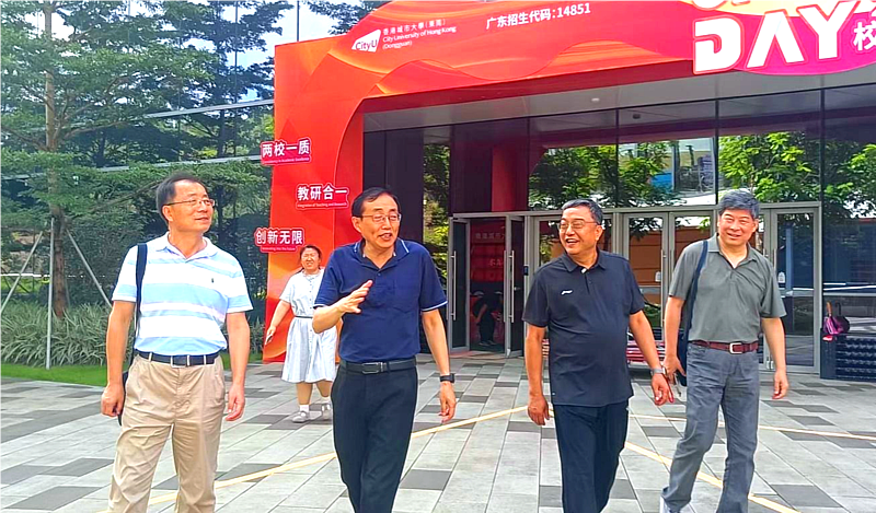 2025年6月22日,beat365官方网站副校长吴伟率领通信与人工智能学院院长李乃乾、副院长孙文高及大数据专业负责人徐炜一行,前往香港城市大学(东莞)进行参观访问。此次访问旨在加强两校间的交流合作,共同探讨学生培养、师资建设及政产学研模式的发展。