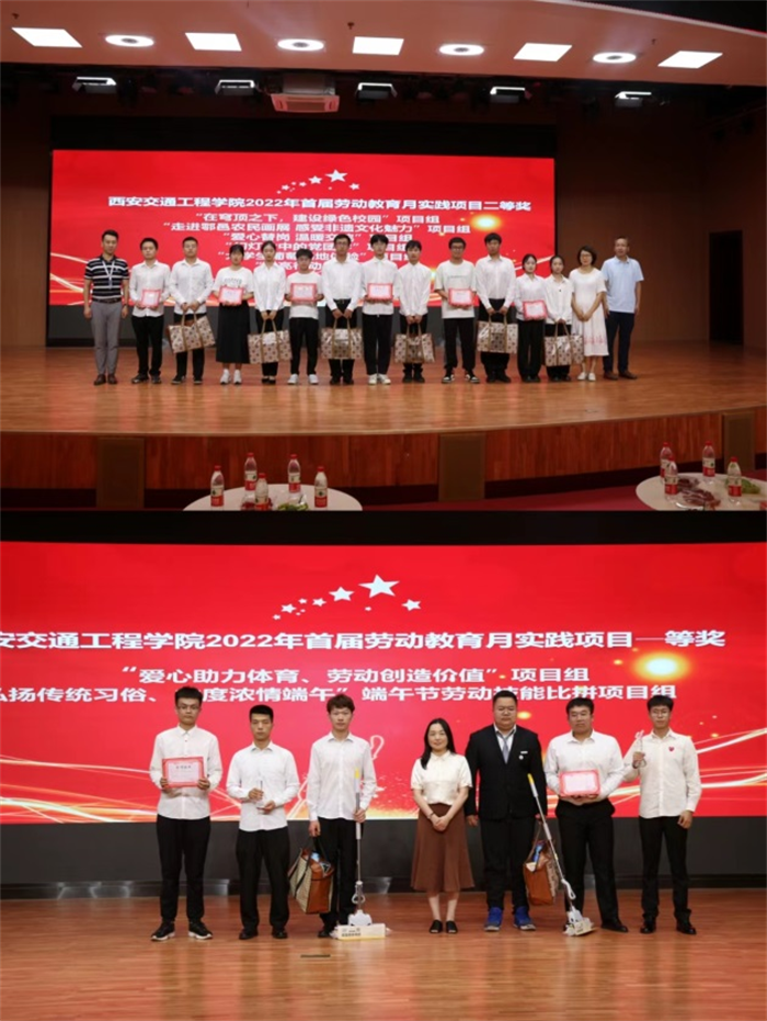 6月16日,beat365首届劳动教育月总结表彰大会在学术报告厅顺利举办,副校长王勇、校长助理潘春辉、学生处副处长钱穆萨、学生处常务副处长张鹏、公共课部主任常在斌、劳动教育教研室全体教师及各二级学院20级、21级学生代表约300人共同参与。