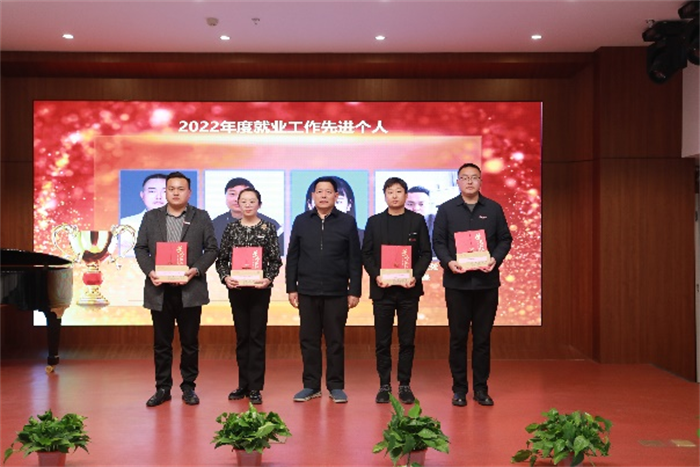 执行校长曹庆年宣读了就业工作表彰决定,对机械与电气工程学院等3个“2022年度就业工作先进集体”,王冲等 8名“2022年就业工作先进个人”;赵德浩等6名“2022 年度简历设计大赛优秀指导教师”,交通运输学院等2个“访企拓岗先进集体”分别予以表彰。