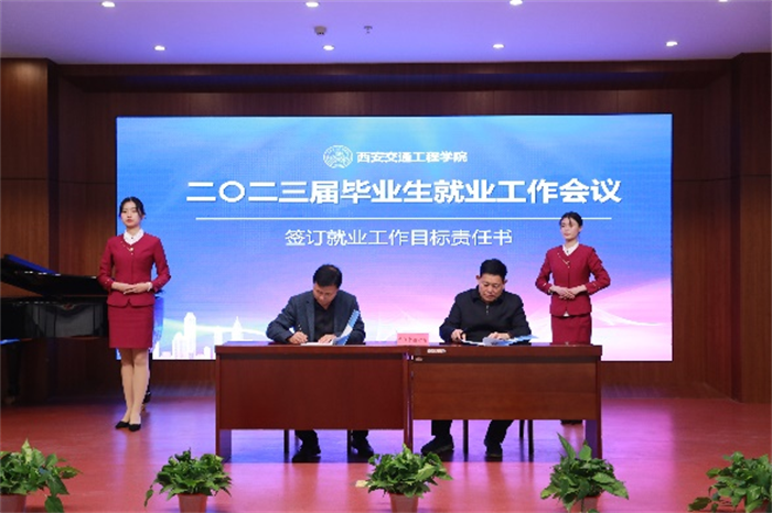 会后,校长刘建朝、副校长徐炜分别与交通运输学院和现代技术学院代表签订2023届毕业生就业工作目标责任书。