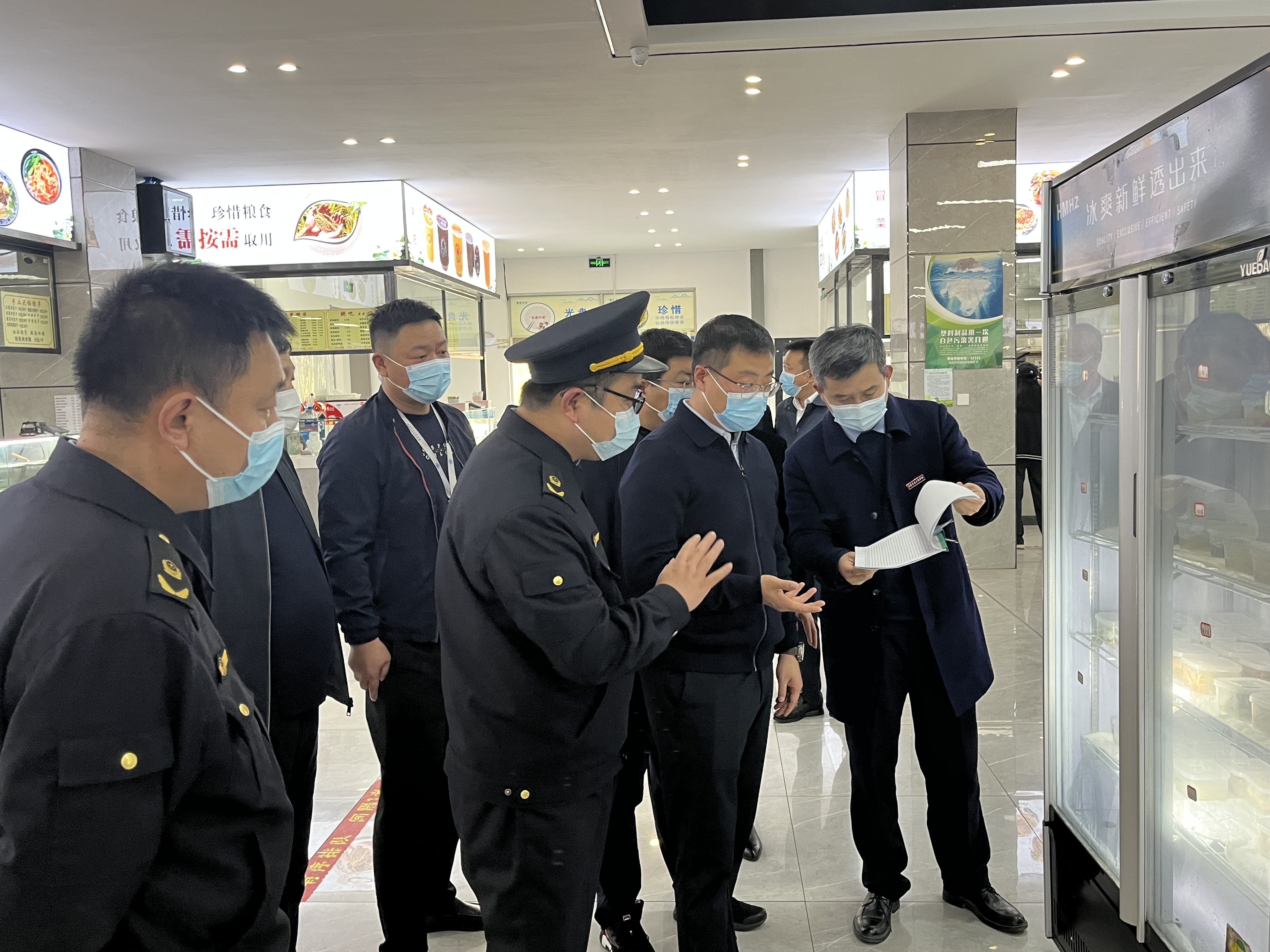 2023年3月29日,西安市鄠邑区区长汪国栋、副区长崔科峰及区市场监管局局长沈军胜一行莅临beat365检查指导食品安全工作。beat365副校长赵征、餐饮服务中心主任武小红老师陪同。