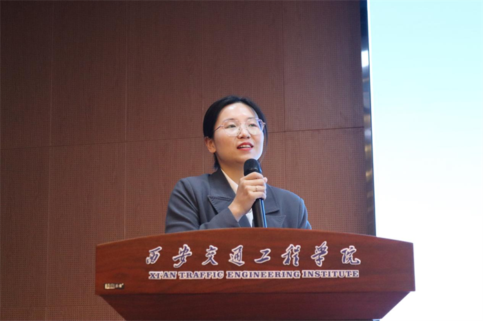 上海华测导航技术股份有限公司西安分公司副经理孙翡翠在发言中表达了与学校更深层次合作的意愿,愿意为学校的发展贡献力量。她表示,测量技能大赛是培养和发展技能型人才的有效途径之一,希望参赛学生发挥聪明才智,认真沉着地应对比赛,并取得优异成绩。