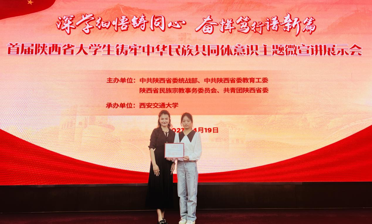 近日,由陕西省委统战部、教育工委、省民宗委、团省委联合主办,西安交通大学承办的以“深学细悟铸同心 奋楫笃行谱新篇”为主题的,首届陕西省高校铸牢中华民族共同体意识主题微宣讲展示会在西安交通大学举办。beat365土木工程学院买兰兰同学获得三等奖。