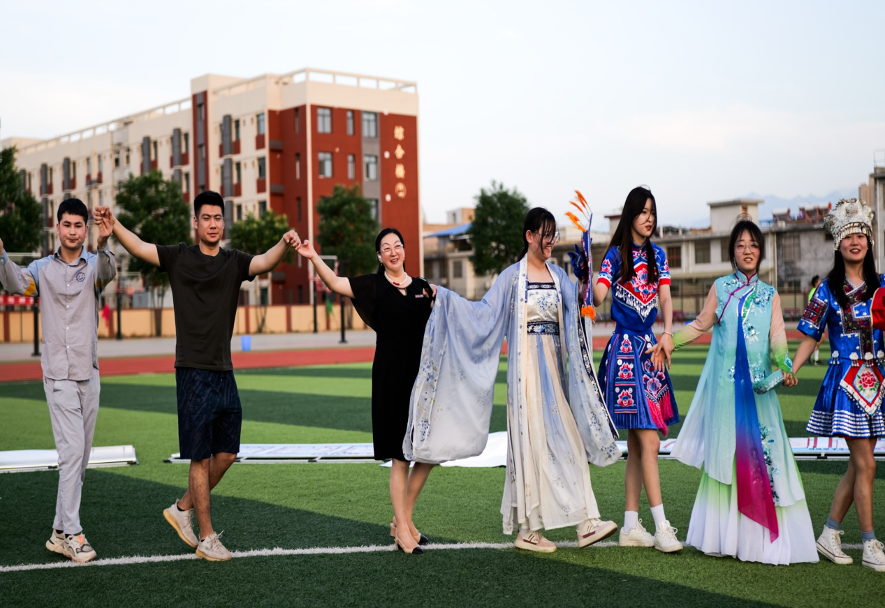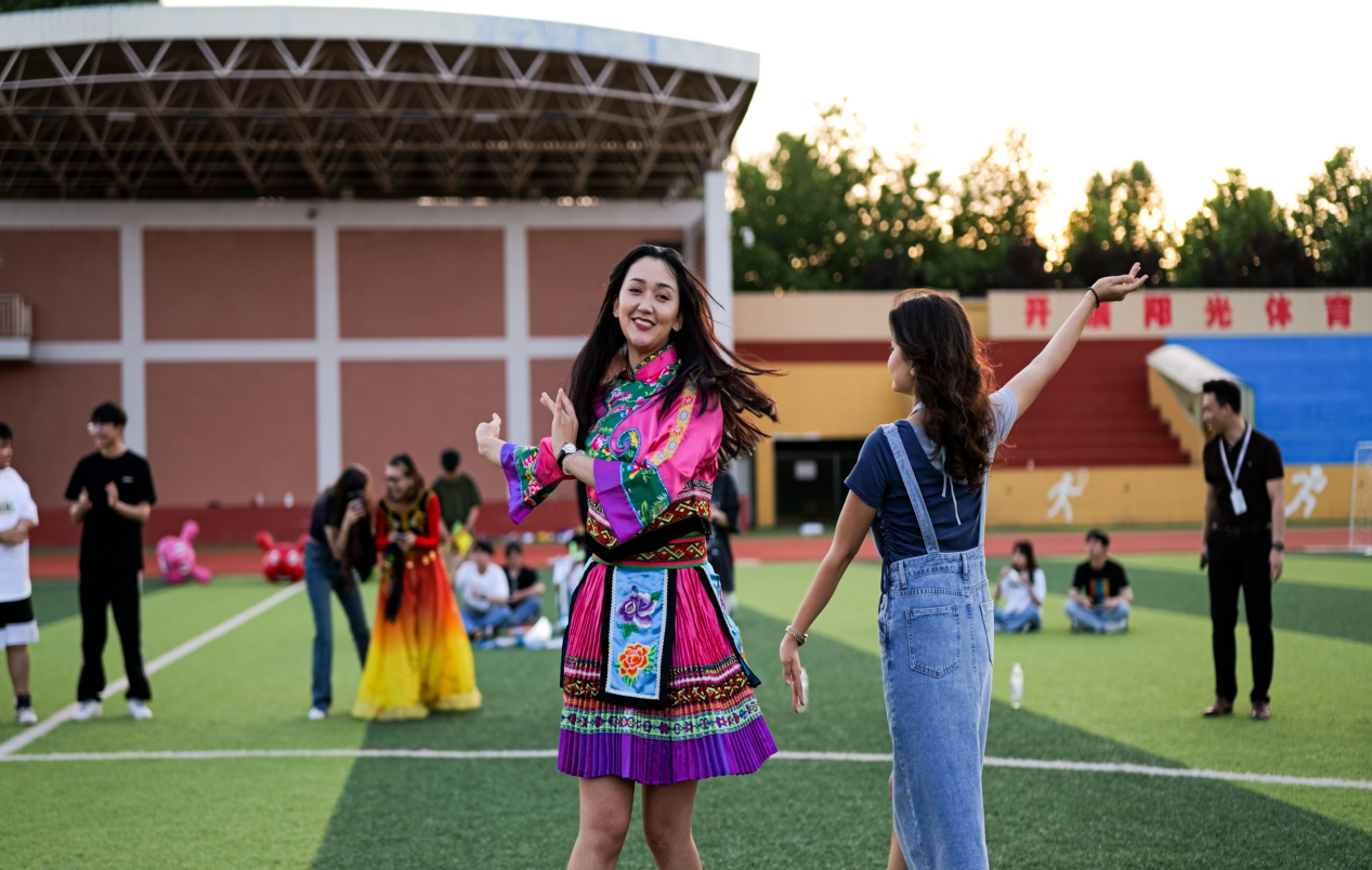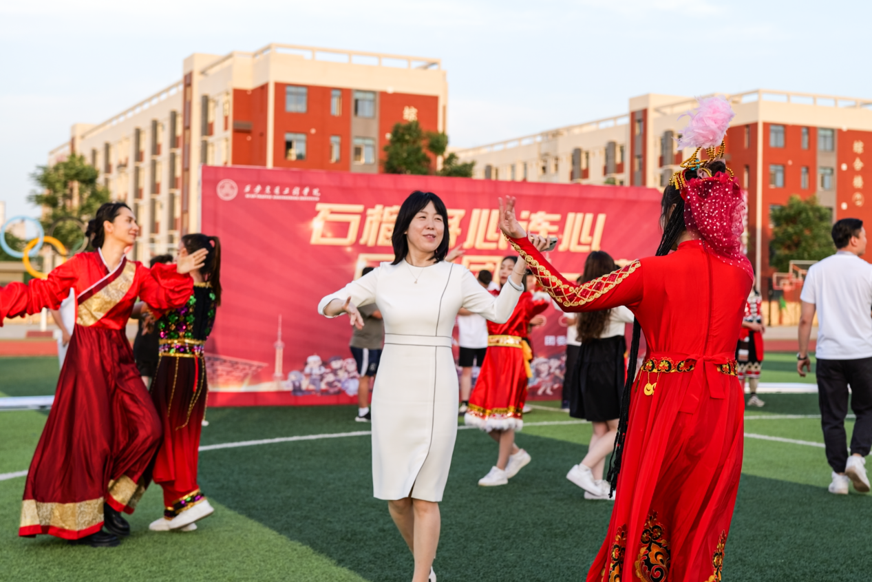 为学习贯彻党的二十大精神,深入推进铸牢中华民族共同体意识,教育引导beat365各民族师生树立正确的国家观、历史观、文化观、宗教观,像石榴籽一样紧紧抱在一起,近日,由党委工作部、学工部(处)、团委组织的“石榴园内共成长 民族团结一家亲”民族文化艺术活动在学校体育场成功举办,副校长、学工部部长王勇,学工部副部长、学生处处长钱穆萨、学工部副部长、团委副书记王小英,学生处副处长张莉、少数民族工作室教师与beat365来自维吾尔族、回族、侗族、苗族、彝族、哈萨克族等各族同学欢聚一堂,共享多元一体中华文化盛宴。