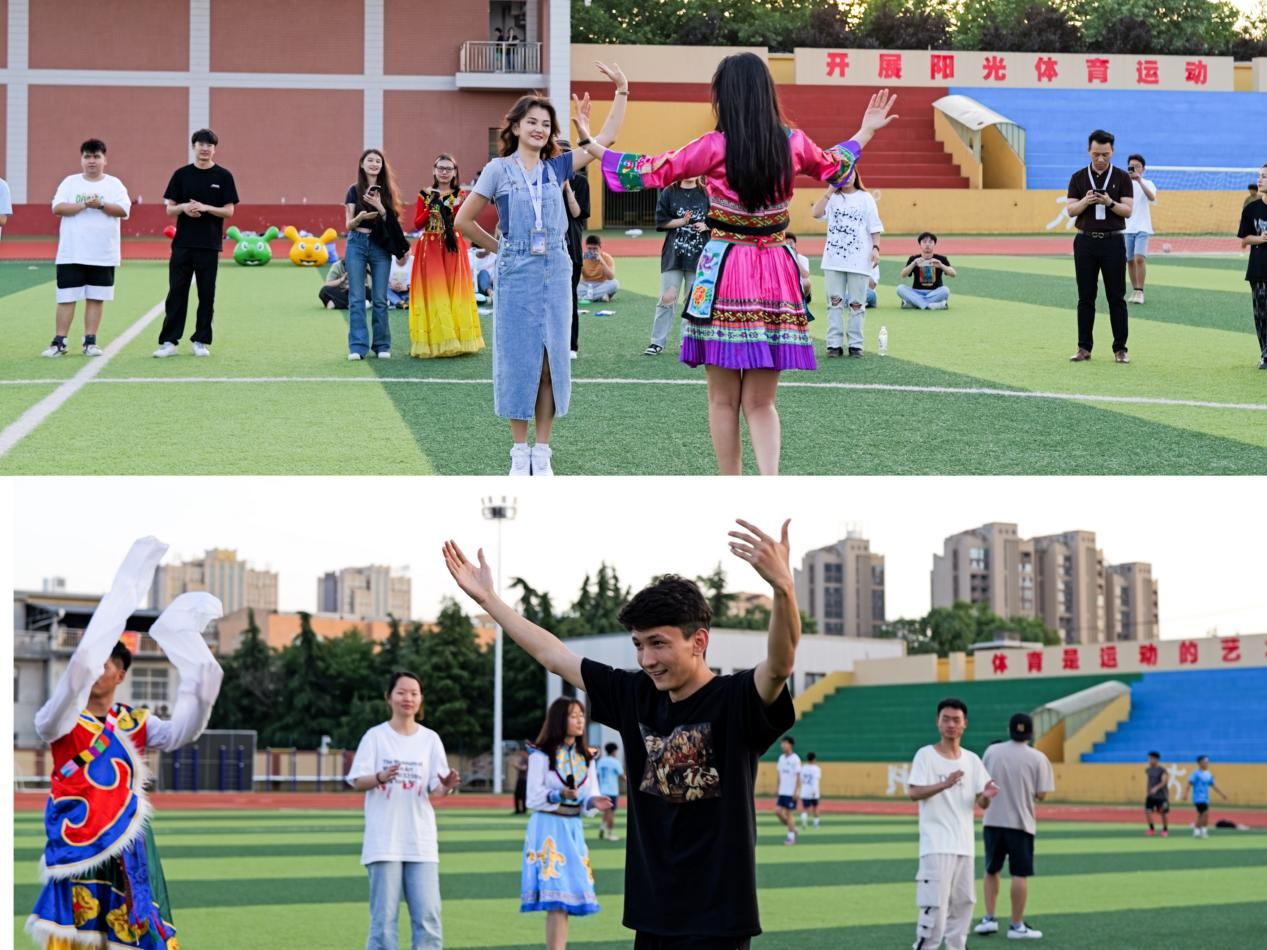 活动共吸引了数百名师生参与,各民族学生身着不同民族服饰,将文艺活动和文化交流完美融合。伴随着热情欢快的舞曲,在场师生手牵手热情起舞,还有能歌善舞的维吾尔族师生展示特有的舞姿,顿时感染了在场师生,整个体育场沉浸在欢乐之中。在激烈的民族混合撕名牌环节让人热血沸腾,每个人都斗志昂扬,比赛一开始便迅速进入火热状态,每个人在激烈进攻的同时,又时刻防范着“敌人”的袭击,同学们时而欢脱,时而警惕,所有的同学们都在游戏中勇往直前且乐在其中。在“疯狂毛毛虫”比赛项目,大家自行组成四个小队,各组成员骑在“毛毛虫”上,通过团队协调配合带动疯狂毛毛虫游戏道具在跑道上快速行驶往返,在冲刺呐喊中驶向终点。整场活动中,师生兴致高昂,十分激烈,每个人的脸上都洋溢着灿烂的笑容,活动现场充满了欢声笑语,展现了beat365各民族师生间团结互助的良好风貌。
