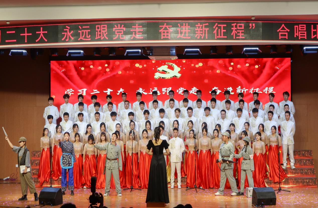 “学习二十大 永远跟党走 奋进新征程”合唱比赛5月30日下午在学术报告厅顺利举办。副校长王勇、党委副书记王宁宁、校工会主席张庆生、党委宣传部部长界威锋、党委统战部部长杨浩成、学生处处长钱穆萨、校团委副书记王小英、各学院党委书记、团总支书记出席活动。鄠邑区文化馆副馆长樊金红、校党委宣传部丁辉、人文与管理学院音乐教研室陈豪华、魏勇、范天资、李银灵、校团委左晨曦担任评委。
