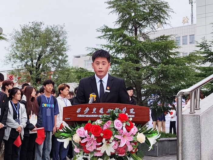交通运输学院张志阳同学以《坚定不移跟党走,矢志不渝再奋斗》为题向全校青年学子发出倡议,号召同学们发扬“自强不息 修德载物”的校训精神,努力学习,奋发拼搏,与时代同频共振,与党和国家同呼吸、共命运。
