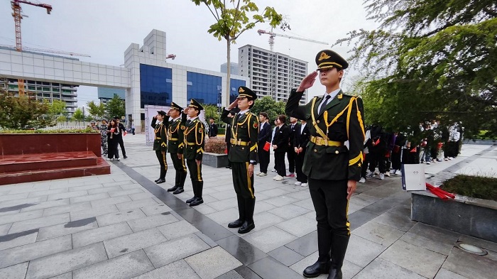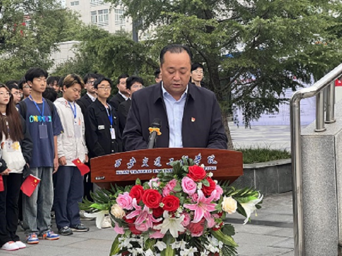 王勇副校长在讲话中深情回顾了祖国74年来走过的风雨历程和取得的伟大成就,激励青年学子在民族复兴的赛道上奋勇争先。他勉励广大青年学子要厚植家国情怀、涵养进取品格,以奋斗姿态激扬青春,不负时代,不负华年。要以爱国报国为己任,牢固树立远大理想,常怀报国志之,荣校爱校,并向同学们提出了三点希望:一是坚定理想信念、树牢奋斗之志,作为新时代青年大学生,你们要坚持读原著学原文悟原理,用好形式多样的学习资源,以理想之光照亮奋进之路,在全面推进中华民族伟大复兴的新征程上涌流出源源不断的青春力量。二是练就过硬本领,夯实奋斗之基,勉励同学们要积极参与社会实践,特别是要深入基层,深入群众,深入到社会一线的伟大实践中,以此加深对社会的认识,对祖国的理解,引发对中华民族未来发展的深刻思考。三是勇于担当奉献、绽放奋斗之花。作为当代青年大学生,要争当先锋模范、勇于担当奉献,在传播党的声音、规范日常行为、搞好志愿服务、遵守校规校纪等方面发挥模范带头作用,带头用党的创新理论武装思想,带头用党的初心使命激励自己,带头听党话、跟党走,带头增强“四个意识”、坚定“四个自信”、做到“两个维护”。学习上要自觉做到“没有最好、只有更好”,努力学以增智、学以广才、学以修身、学以致用;生活中做到严于律己、遵规守纪,担负起青年大学生应尽的责任义务;学风建设上要知行合一、以身作则,积极发挥模范带头作用。