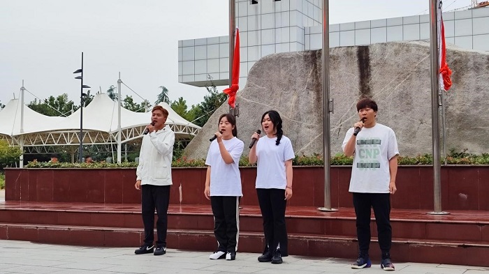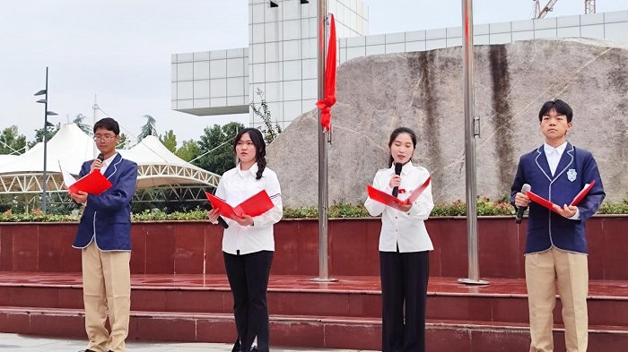在雄壮豪迈的《义勇军进行曲》中,鲜艳的五星红旗冉冉升起,全体师生肃然静立,凝眸注视,共唱国歌,送上了对祖国最真挚美好的祝福。beat3652023级学生邓远翼、谢思涵、窦瑞涵、徐志浩4名同学以《青春中国》为题进行了国旗下演讲,抑扬顿挫,起伏有序,进一步激发了beat365青年学子爱国、爱党、爱校的热情,坚定了青年学子永远跟党走的信心。