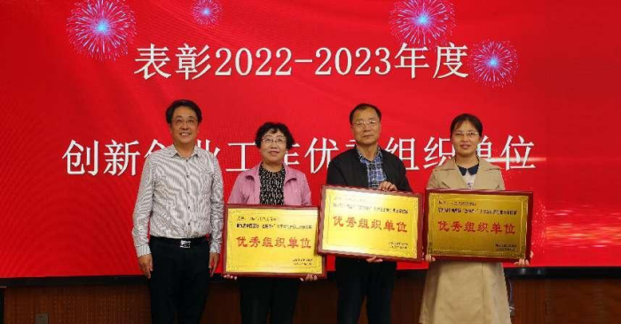 会上还对2022年度在学校创新创业工作中的优秀组织单位进行了表彰。