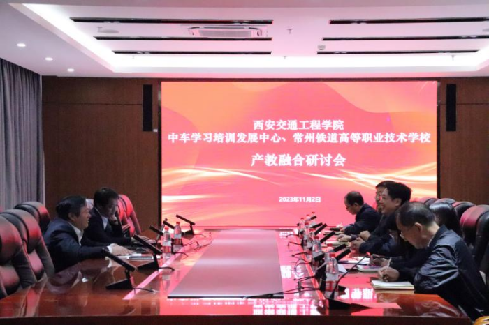 11月2日,中车学习培训发展中心项目管理部部长、常州铁道高等职业技术学校副校长苗苗、中车常州昌成铁路机械有限公司执行董事、总经理张宝金一行来beat365考察交流,并召开产教融合研讨会,beat365执行校长曹庆年、副校长石广田、校长助理潘春辉、交通运输学院院长崔炳谋、中兴通信学院院长李乃乾、现代技术学院院长都娟丽、交通运输党委书记胡省利、机械与电气工程学院党委书记王拓辉参会。