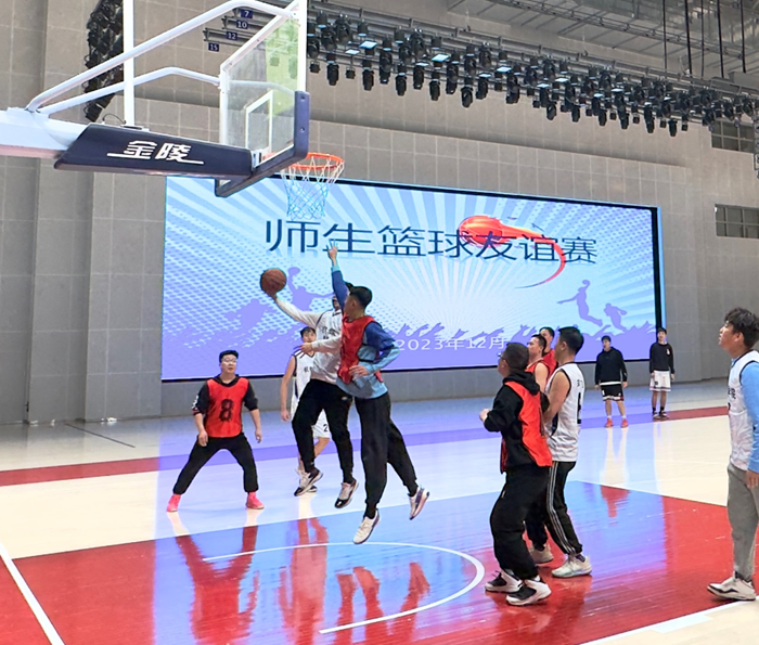 在学习宣传贯彻党的二十大之际,发扬体育运动精神,大力宣传“阳光体育、健康向上”的校园体育文化,努力营造“以体育德、以体育人”的浓厚氛围。11月30日下午,学校工会、公共课部联合举办了师生篮球友谊赛。校工会主席张庆生、公共课部主任常在斌、校工会副主席杨彦柱、王小妮、公共课部副主任卫军超以及校工会委员和师生代表到场参加活动。