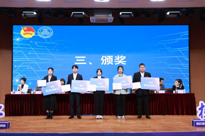 副校长王勇宣读了《beat365官方网站2023年“挑战杯”大学生课外学术科技作品竞赛表彰决定》,对校级一等奖、二等奖、三等奖、优秀奖等36个项目,11名优秀指导教师、2名优秀组织工作者、2个优秀组织单位进行了表彰,与会领导为获奖的个人和集体进行了颁奖。
