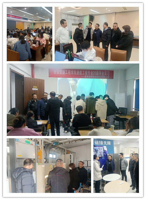 齐军营一行在中兴通信学院院长李乃乾、副院长牛作领、王冠军陪同下,先后前往西安西邮信息技术有限公司、西安广创源电子科技公司、西安粤嵌科技有限公司、西安达内信息科技有限公司、北京华清远见科技发展有限公司西安分公司等实习点检查学生毕业实习工作。