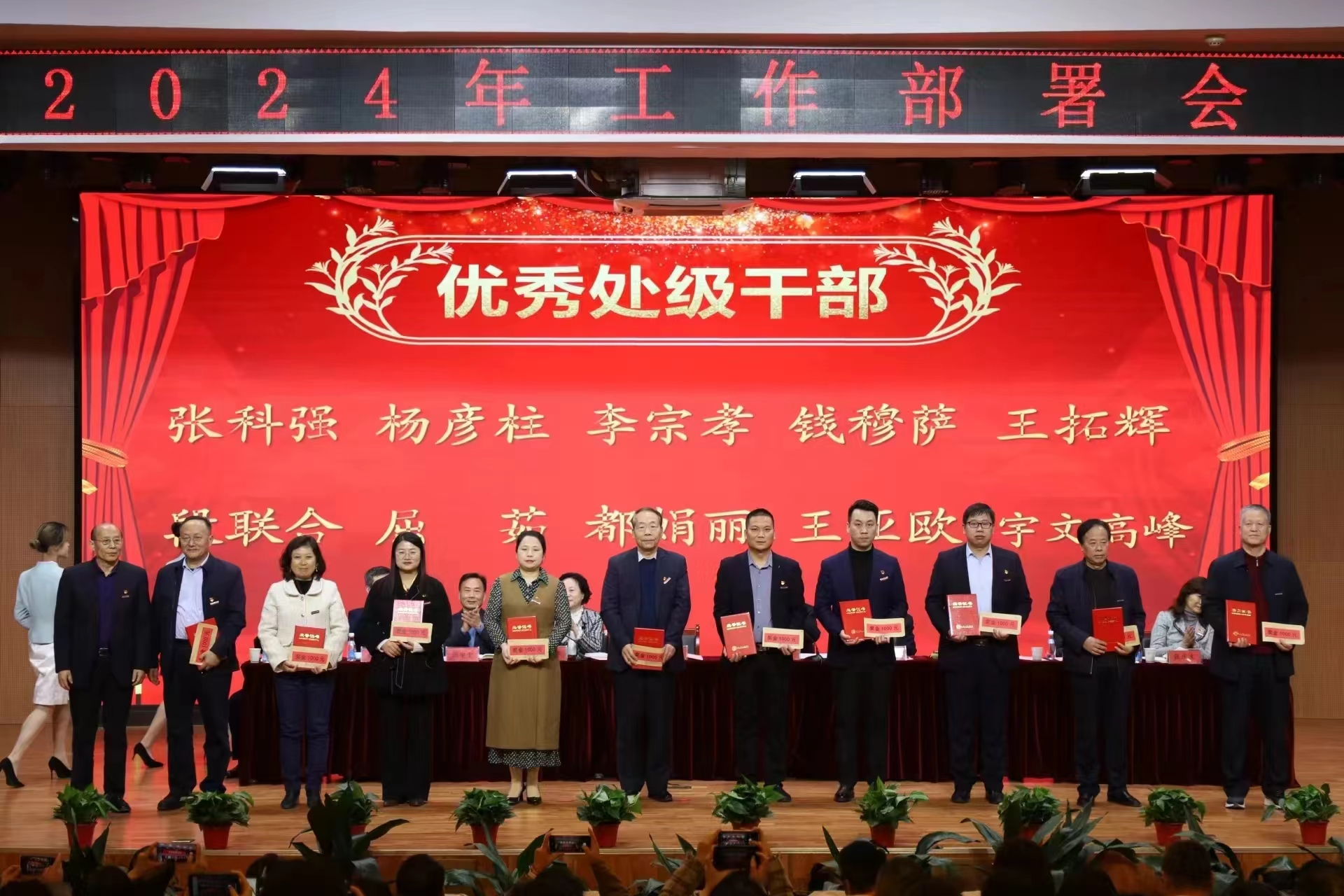 曹庆年校长部署了2024年学校工作,他指出,2024年工作基调是:以党建工作为引领,以立德树人为根本任务,不断强化教学中心地位,加强内涵建设,持续提高人才培养质量。2024年工作目标是:夯实基础、补齐短板、规范管理、指标达标。工作依据是学校第二次党代会精神、《“十四”五事业发展规划》、教学工作会议精神、学生工作会议精神、《评估整改工作方案》。围绕2024年工作目标,曹庆年校长强调了“怎么做”的问题,一是抓好党建工作。要把党建工作与师德师风建设相结合、与人才培养相结合、与学风建设相结合。二是抓好教学与科研工作。要全力稳定正常的教学秩序;贯彻OBE理念,开展专业认证试点工作,持续加强专业建设;建立和完善教师工作业绩评价体系、教师教学评价体系、学生学习评价体系;建立管建评一体系体系;扎实做好毕业设计;坚持学科专业一体化建设,不断加强科研工作,鼓励教师围绕轨道交通特色凝练自己的研究方向;以产业学院建设为抓手,扎实做好产教融合工作;持续抓好课程思政建设,围绕专业做好《课程思政工作指南》。三是抓好学生工作和就业工作。学生工作方面,要坚持教育、服务、管理的理念,不断加强学风建设,构建学生工作评价体系,开展量化考核;严格落实班主任工作制度;在学风建设中充分发挥班干部、党员、积极分子的作用,指导学生自我管理、自我服务;要以学科竞赛、大学生创新创业项目及社团活动为抓手,结合30周年校庆开展丰富多彩的校园文化活动。就业工作方面,要落实就业工作“一把手”工程,多举办线上线下招聘会并鼓励学生积极参加;认真落实毕业生就业去向,确保数据详实准确可靠;要高度关注困难学生就业问题;全力以赴做好访企拓岗工作。四是抓好保障工作。队伍保障方面,要继续加大教师招聘力度;加强教师培训,提高双师型教师比例;做好优秀教师的选拔工作;配齐配强关键部门的教学行政和专业技术岗位人员。财务保障方面,要尽快完成内控制度建设;修订财务报账相关程序,确保合法法规和简便;高度关注教学日常运行经费支出;加强培训,增强教学单位对教学日常经费17项内容的理解。大后勤保障方面,要不断推进物资采购和建设项目力度,主动与院部对接,提高效率,保证质量;要建立定期巡查制度,后勤保障处重点巡查教学设施、饮食卫生;保卫处、教务处定期巡查实验室安全,主动发现问题,整改问题,保障教学状态良好,教学秩序稳定。