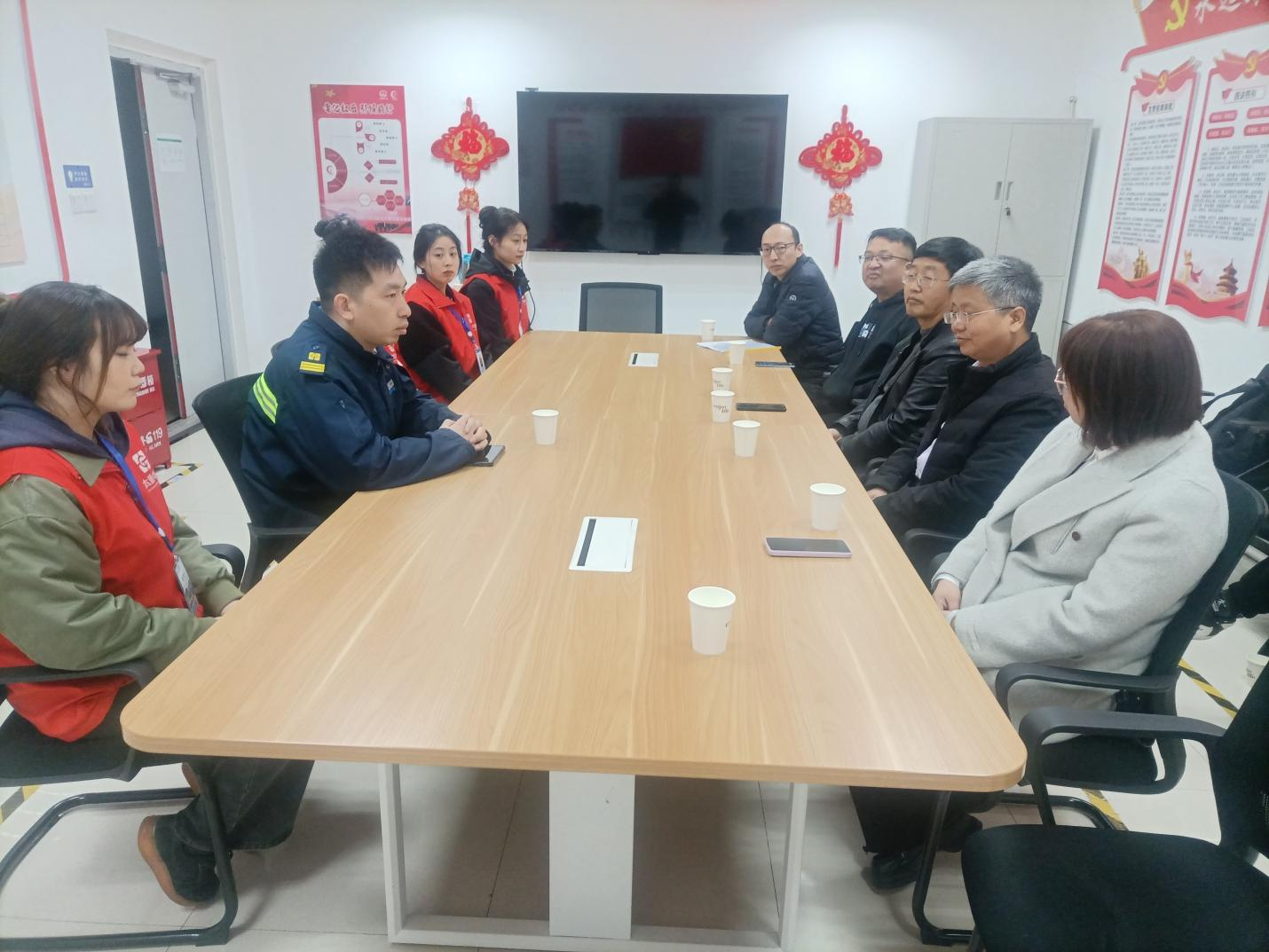随后,大南门站站长慕随阳带领石校长一行参观了站内的文化建设和设施设备,双方并进行了座谈。座谈会上,慕站长向石校长汇报了自己毕业后快速成长的经历,分享了自己的工作与生活情况,感恩学校在自己上学期间提供的各类历练机会,为自己今天的工作夯实了基础。石校长也代表学校向慕站长为学校工作做出的贡献表示感谢,并诚挚邀请他回母校参加建校30年校庆,双方就今后合作进行了深入洽谈,同时对人才培养方案中课程修订征求了企业的意见与建议。