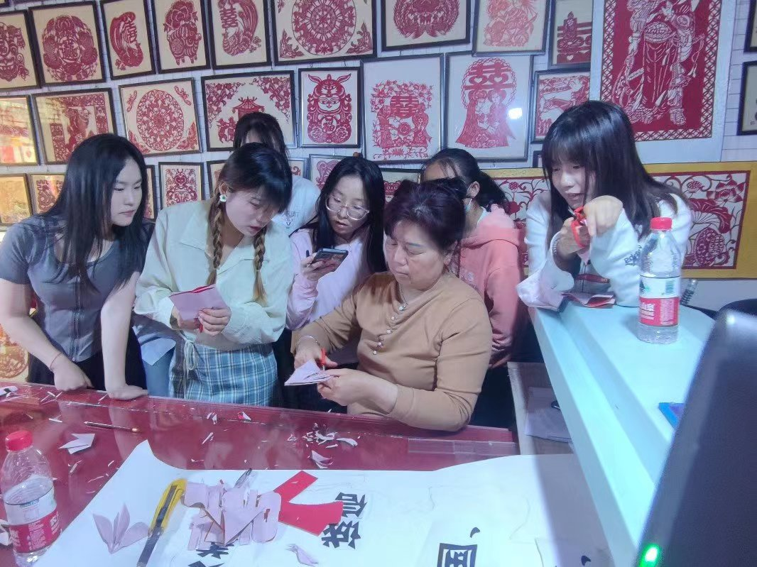 户县非物质文化遗产传承人杨彩霞女士走进学生课堂讲解剪纸文化
