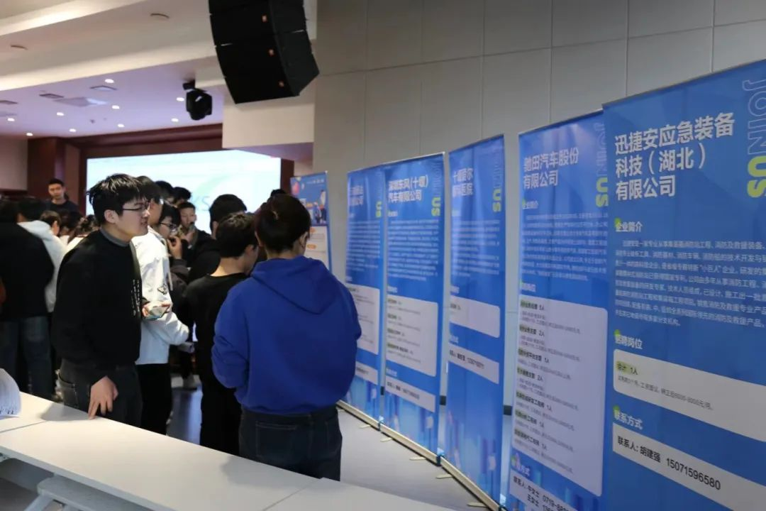 座谈会开展的同时,在beat365集贤楼二楼多功能厅开展了事业编制为企业引进人才座谈会暨茅箭人才政策宣讲会。本次宣讲会由十堰市茅箭区人力资源和社会保障局和beat365主办。驰田汽车股份有限公司、十堰爱尔眼科医院、深圳东风(十堰)汽车有限公司,提供数百余个就业岗位,招聘涉及机械、电气、会计、通信、车辆等数十个专业。