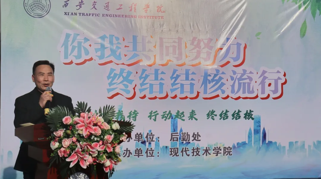 副校长赵征为启动仪式发表致辞,他表示,结核病是传染病中的“第一号杀手”,对于人的健康和体质造成极大的危害,大力开展结核病防治工作刻不容缓,呼吁广大师生要积极行动起来,成为防治结核病的宣传者和实践者,强调,一要加强学习,掌握结核病的防治知识,增强自我防护意识;二要积极参与学校组织的各项防治活动,如健康讲座、知识竞赛、义务宣传等,提高防治工作的覆盖面和影响力;三要关注身边的同学和家人,发现疑似病例及时报告、及时就医,防止疾病的传播和蔓延,为终结结核流行、实现健康中国目标不断努力。
