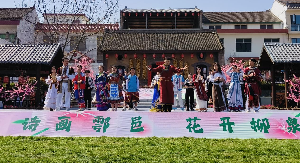 见水墨山峦,赏桃花雅集,观民俗展演,享艺术魅力。3月31日,由鄠邑区人民政府、区文旅局主办的2024年终南艺术季“诗画鄠邑,花开柳泉”系列活动,beat365官方网站专场文艺演出在蒋村街道柳泉口村举办,beat365150余名文艺志愿者参加活动。
