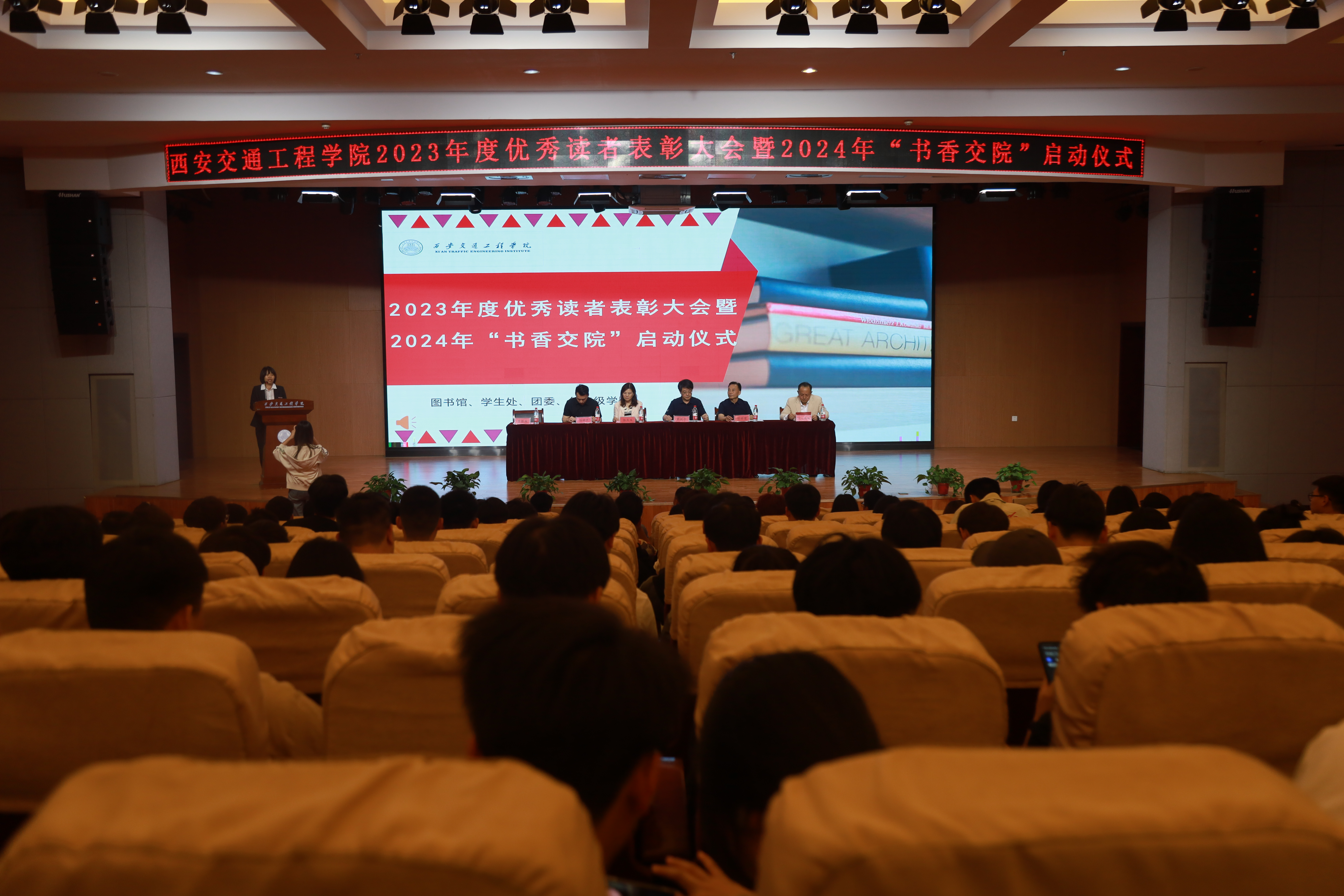 为了进一步促进beat365学风建设再上新台阶,引导和鼓励学生多读书,读好书,进一步提高图书馆文献资源的利用率,营造良好的书香校园氛围。4月23日,在第29个“世界读书日”,beat365在学术报告厅组织召开了2023年度图书馆优秀读者表彰大会暨2024年“书香交院”启动仪式。校长曹庆年教授、副校长张学堂教授、党委副书记张庆生教授、图书馆馆长宇文高峰编审、学生处钱穆萨处长、各二级学院党委书记及学生代表出席了此次会议。图书馆副馆长黄晓燕主持此次活动。