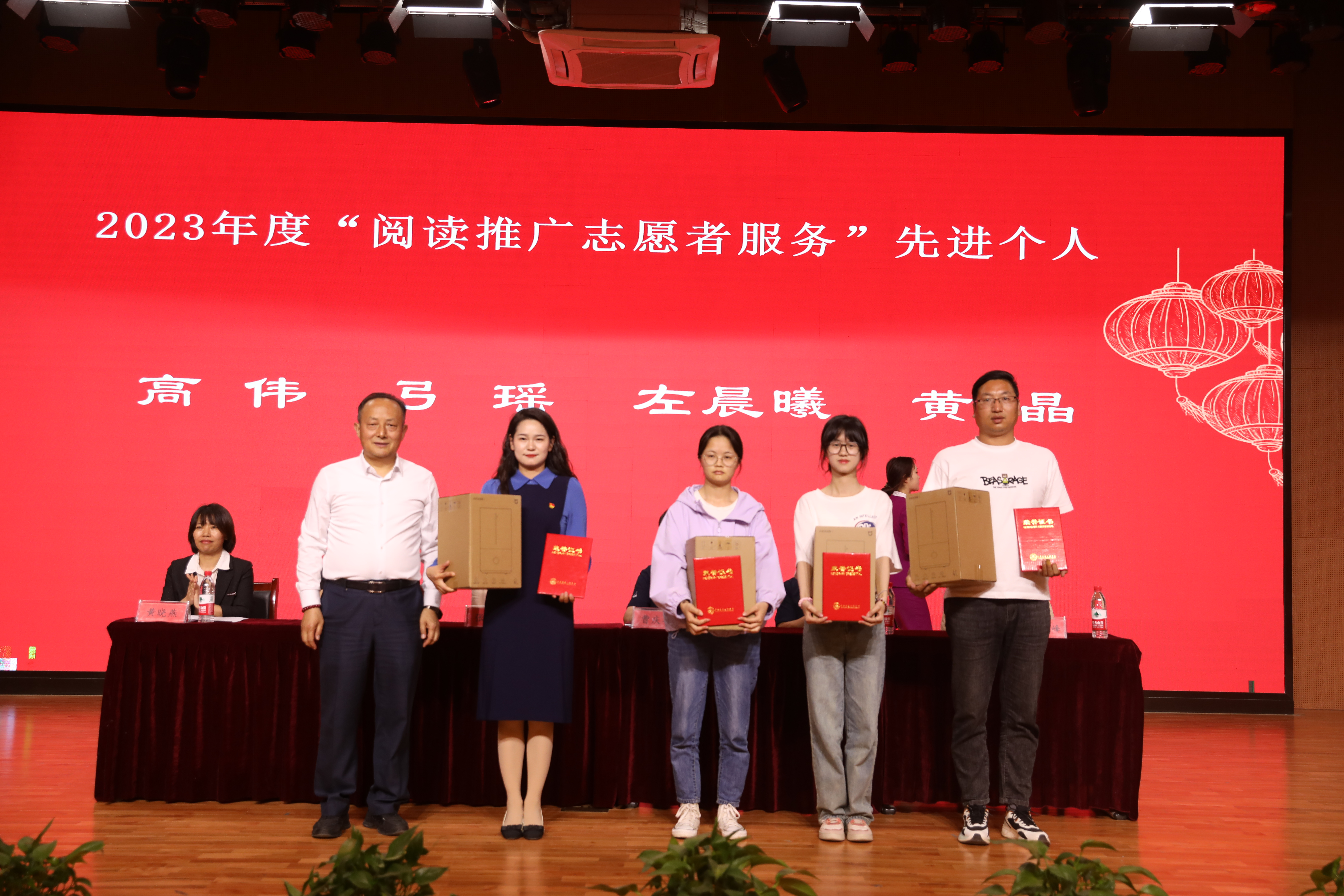 副校长张学堂宣读了关于beat365官方网站关于表彰2023年度优秀读者的决定及学生“阅读之星”、教工“阅读之星”、学生“专业图书阅读之星”、“图书馆达人”、“教工阅读之星”“教工志愿者服务先进个人”、“阅读推广个人及单位”等获奖者名单,与会领导为受表彰的单位和个人颁发了奖品、证书和奖牌。随后,机械与电气工程学院机器人工程2101班丁光欣同学代表学生获奖者发言,分享了自己的读书心得;接着,阅读推广先进个人代表、机械与电气工程学院辅导员赵伟冬老师交流了自己组织、促进阅读推广工作的经验和一些做法。