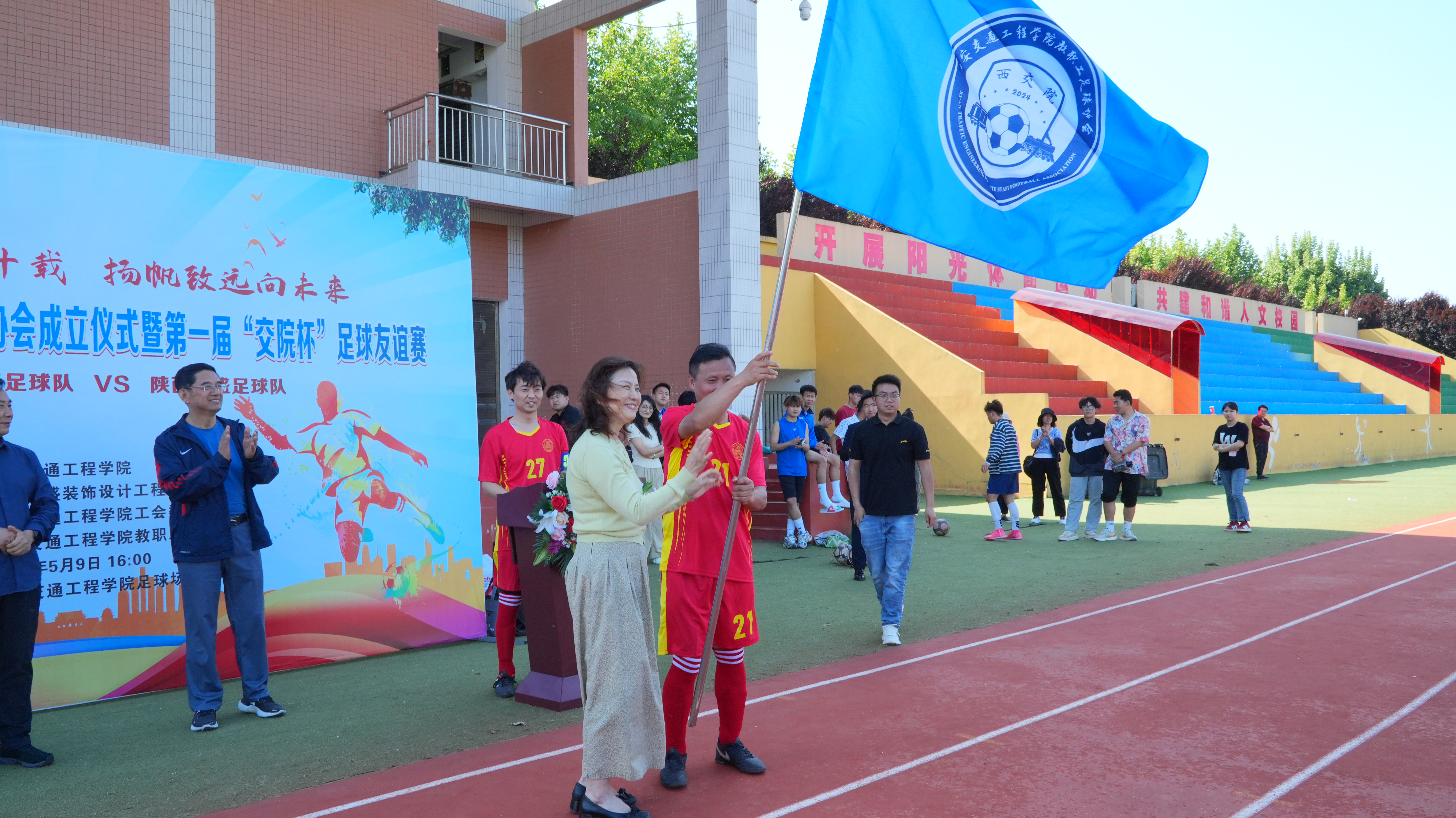 为庆祝学校建校30周年的辉煌成就,发扬团结协作、奋勇争先的精神,以体育为纽带,促进校企双方的交流与合作。5月9日,学校教职工足球协会成立仪式暨第一届“交院杯”校企足球友谊赛在学校体育场隆重举行。陕西中盛装饰设计工程有限公司总经理高亮,学校副校长张学堂、副校长赵征,学校党委副书记、纪委书记、工会主席张庆生出席成立仪式并为教职工足球协会授旗。学校教职工足球协会副会长张磊主持成立仪式。