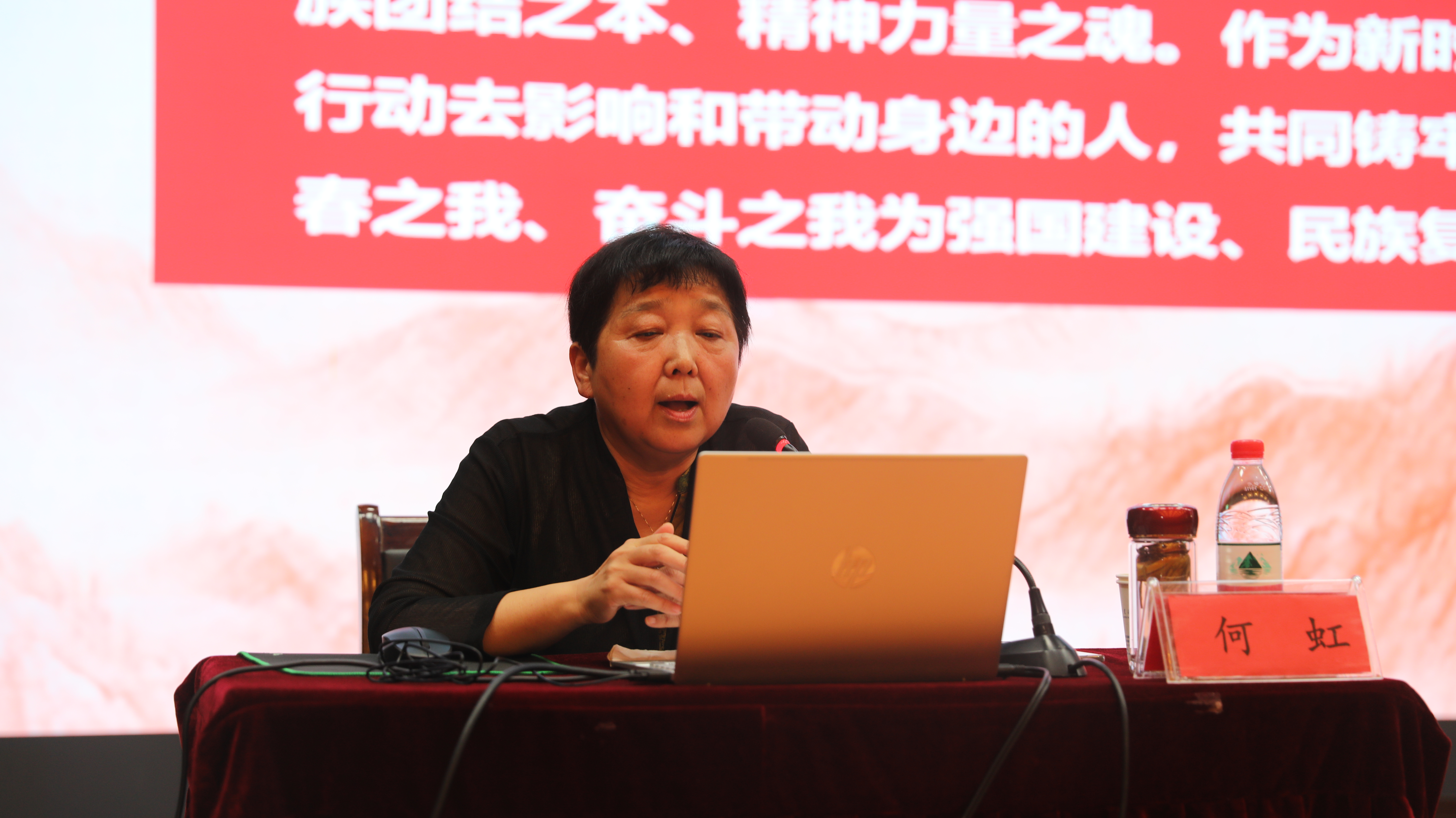 何虹教授以“铸牢中华民族共同体意识”为主题,从“什么是铸牢中华民族共同体意识”“为什么要铸牢中华民族共同体意识”“怎样才能铸牢中华民族共同体意识”三个方面进行了深入阐述。她结合实际案例,生动形象地讲解了民族团结工作的重要性,并强调了在中华民族大家庭中,各民族应像石榴籽一样紧密团结,共同奋斗,以实现中华民族伟大复兴的中国梦。
