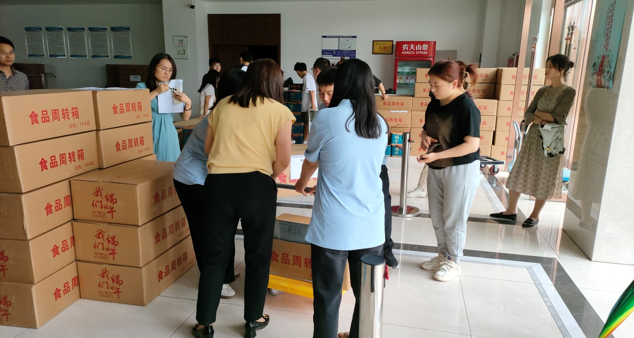 在慰问品发放现场,各基层工会干部们准确高效的完成了慰问品的清点、整理和发放工作工作。
