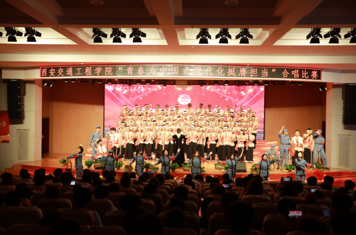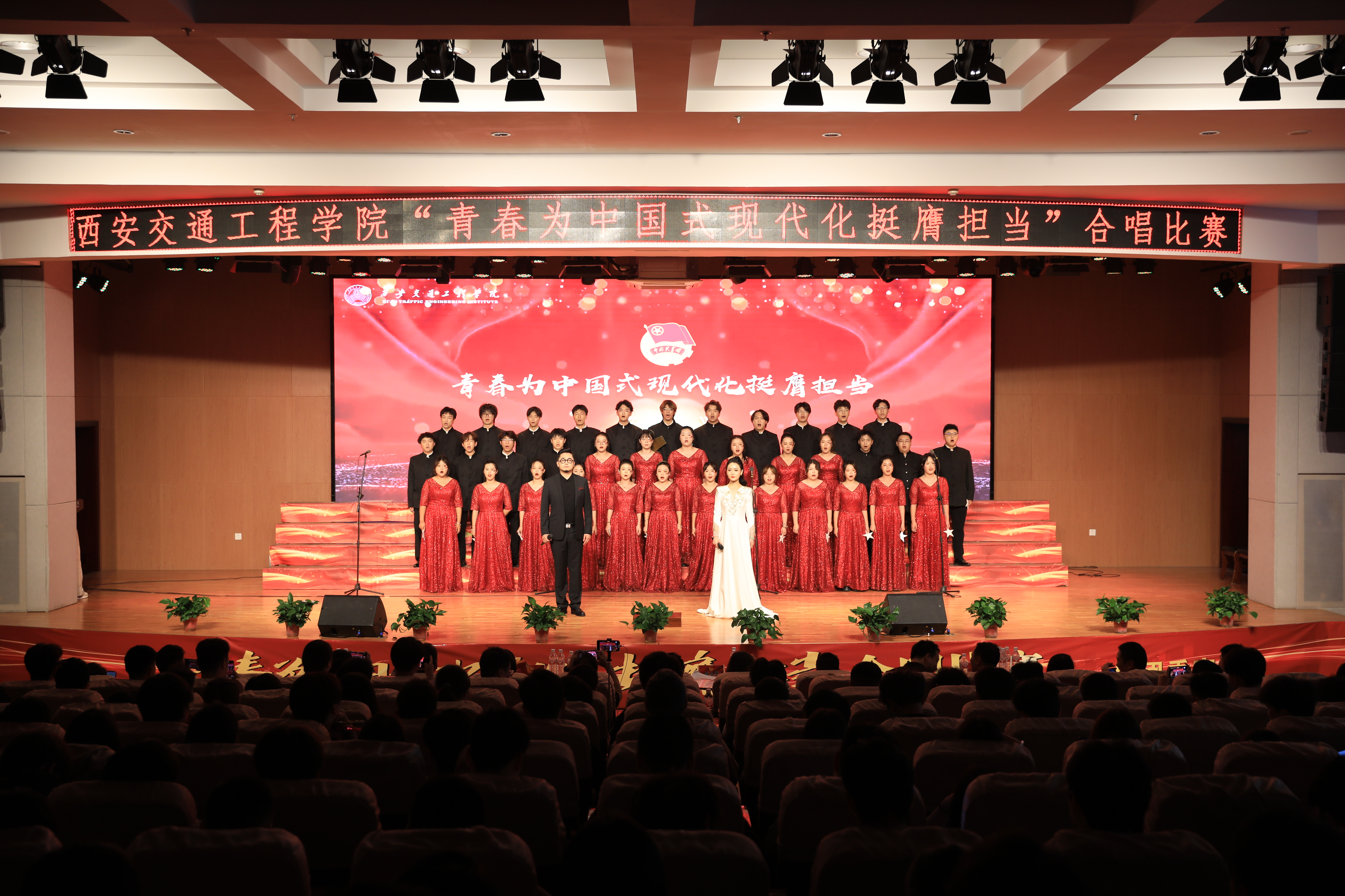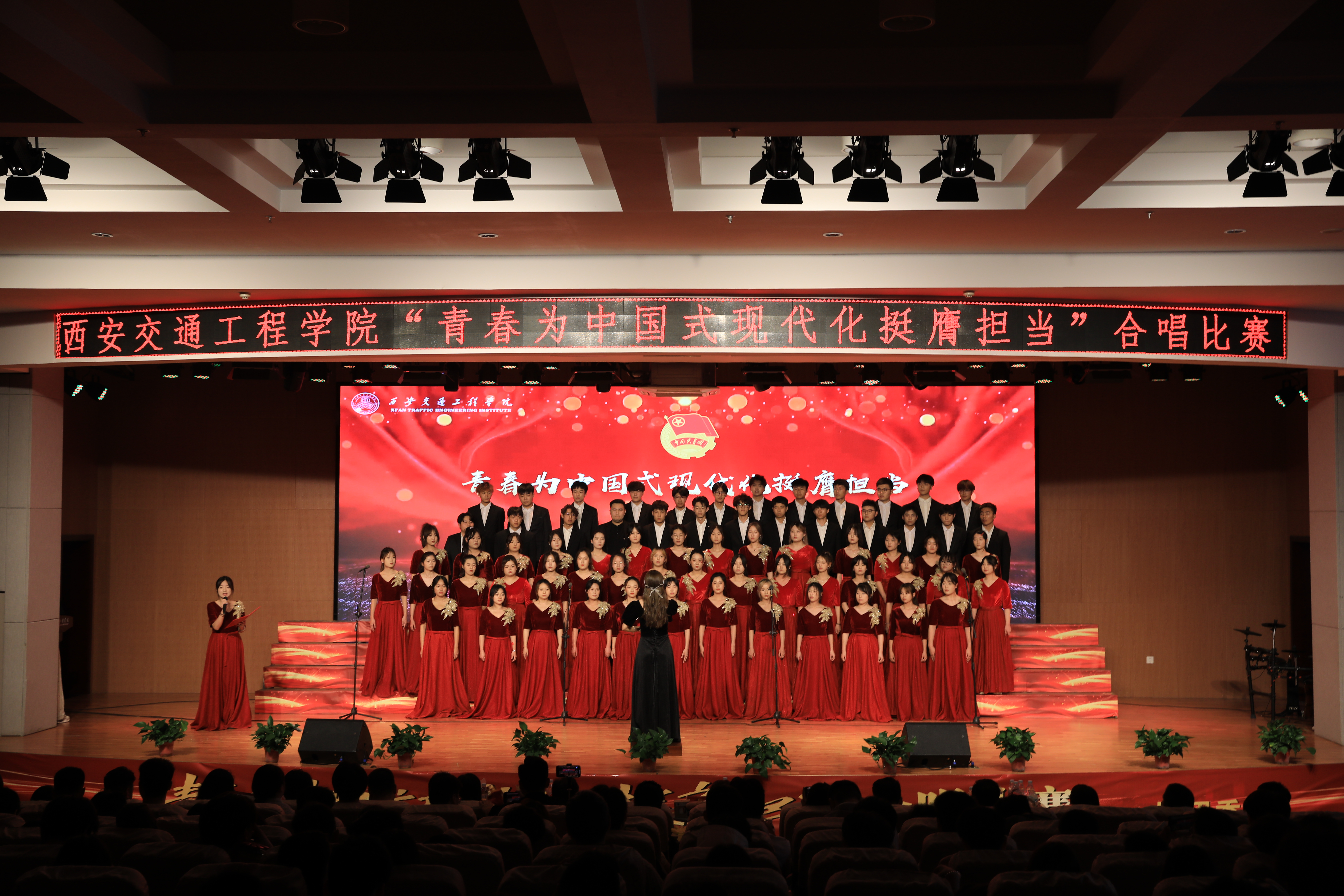 各参赛队伍以朝气蓬勃、昂扬向上的精神面貌,用热血沸腾、高昂嘹亮的歌声,唱出了对祖国深情的告白、对中国共产党的亲切热爱,对母校的深深眷恋。《有我》通过激昂的旋律和深情的歌词,表达了对青年一代的期许和激励,鼓励他们勇敢地追求梦想,为祖国的繁荣富强贡献自己的力量。《军民大生产》慷慨激昂的歌词、奋进明快的节奏、雄壮豪迈的曲调抒发出军民共同热火朝天的劳动,抒发出对祖国欣欣向荣的热爱。《没有共产党就没有新中国》旋律深情而庄重,歌词简洁而有力,合唱队员们用真挚的情感,唱出了对共产党的感激与敬仰。《国家》《大中国》道尽了青年学子对党和国家的浓浓深情,鼓励着青年为中华民族的伟大复兴而自强;《东方红》《紫荆花盛开》唱出青年学子坚定理想、百折不挠的奋斗精神,展现了青年学子的蓬勃朝气,体现了当代大学生勇立潮头、迎难而上的信心;展现了当代青年应有的责任与担当,以及对美好明天的憧憬。合唱此赛在人文与管理学院合唱团的歌声中落下帷幕,他们演唱的《如愿》《灯火里的中国》不仅是一首优美的歌曲,更是一个时代的记忆和情感的载体。它用音乐的方式,将两代人的奋斗与传承、亲情与家国情怀紧密地联系在一起,成为了一首能够跨越时间和空间,触动人心深处的经典之作。11支合唱队伍着装统一,合唱表演形式多样,精彩纷呈。活动现场,交院青年用嘹亮的歌声表达着对对革命历史和先烈的怀念与崇敬、表现了交院青年积极向上的精神风貌以及对美好生活的向往和追求。