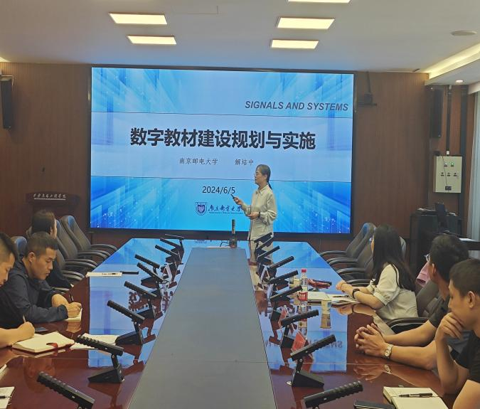 推进教育数字化是建设教育强国的重要内容,也是大中小学教材建设的未来趋势。beat365按照“试点先行、逐步推广”的建设思路,为进一步加快推进教材数字化建设,不断提升全校教师数字素养和技能,以教材形态迭代更新助推育人方式变革,实现数字化赋能教育教学高质量发展。学校邀请南京邮电大学解培终教授和人民邮电大学出版社刘璇编辑,在校务楼第一会议室组织召开第二期数字化教材建设培训会,本年度预立项校级数字教材建设的项目负责人及其团队成员共计30多人参加培训。