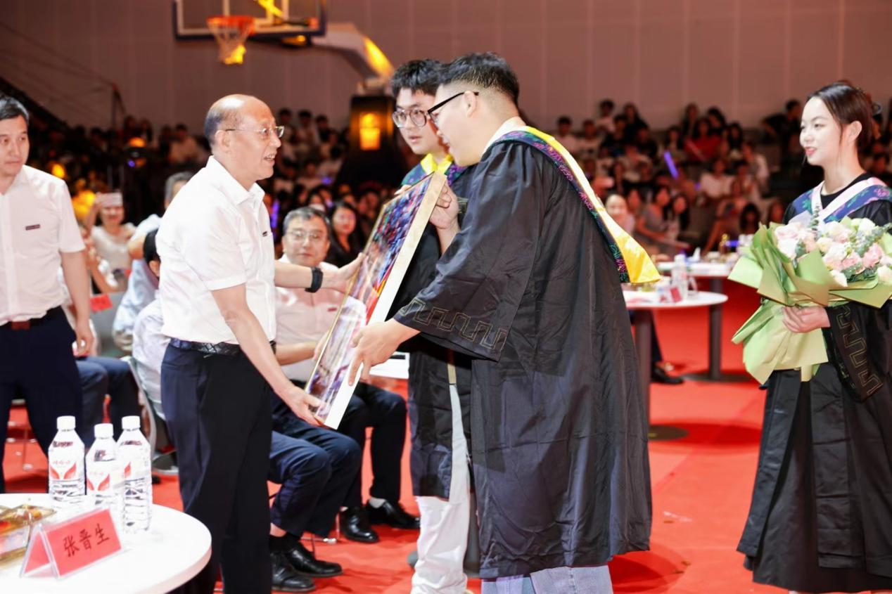 “青春如歌绽芳华 逐梦起航向未来”2024届毕业生文艺晚会现场毕业生为理事长张晋生教授献礼