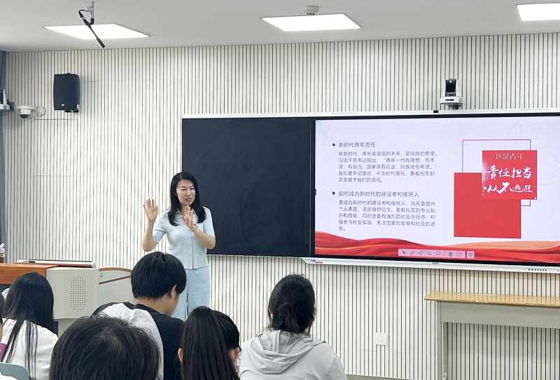 党委书记李萍教授为学生讲思政课