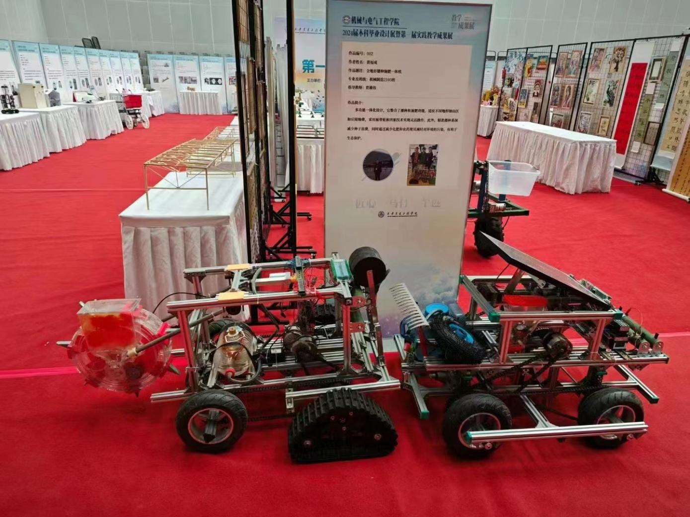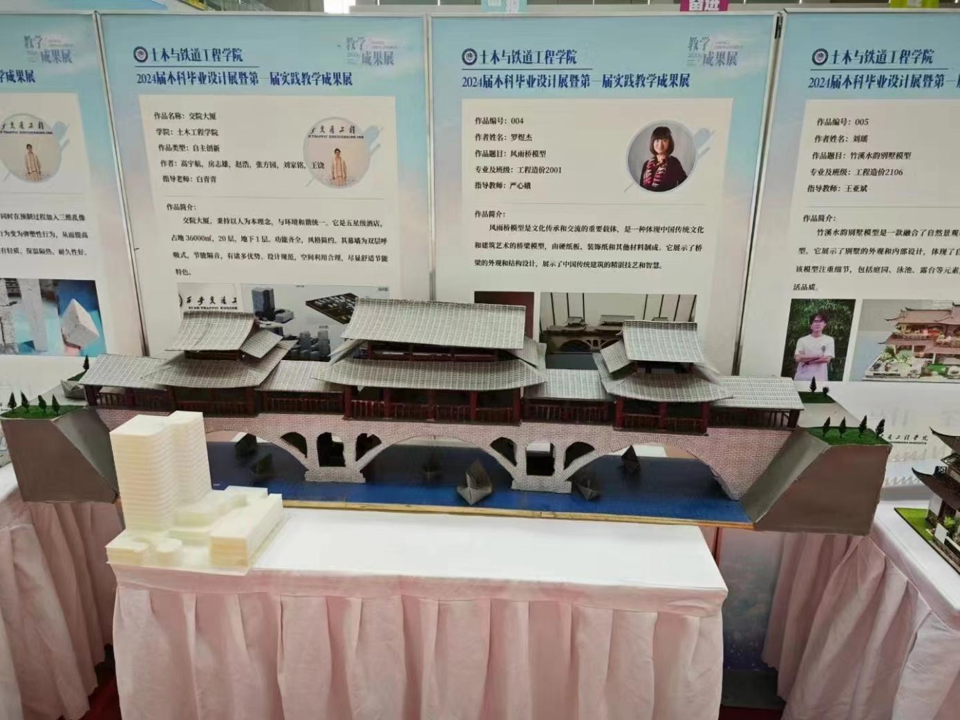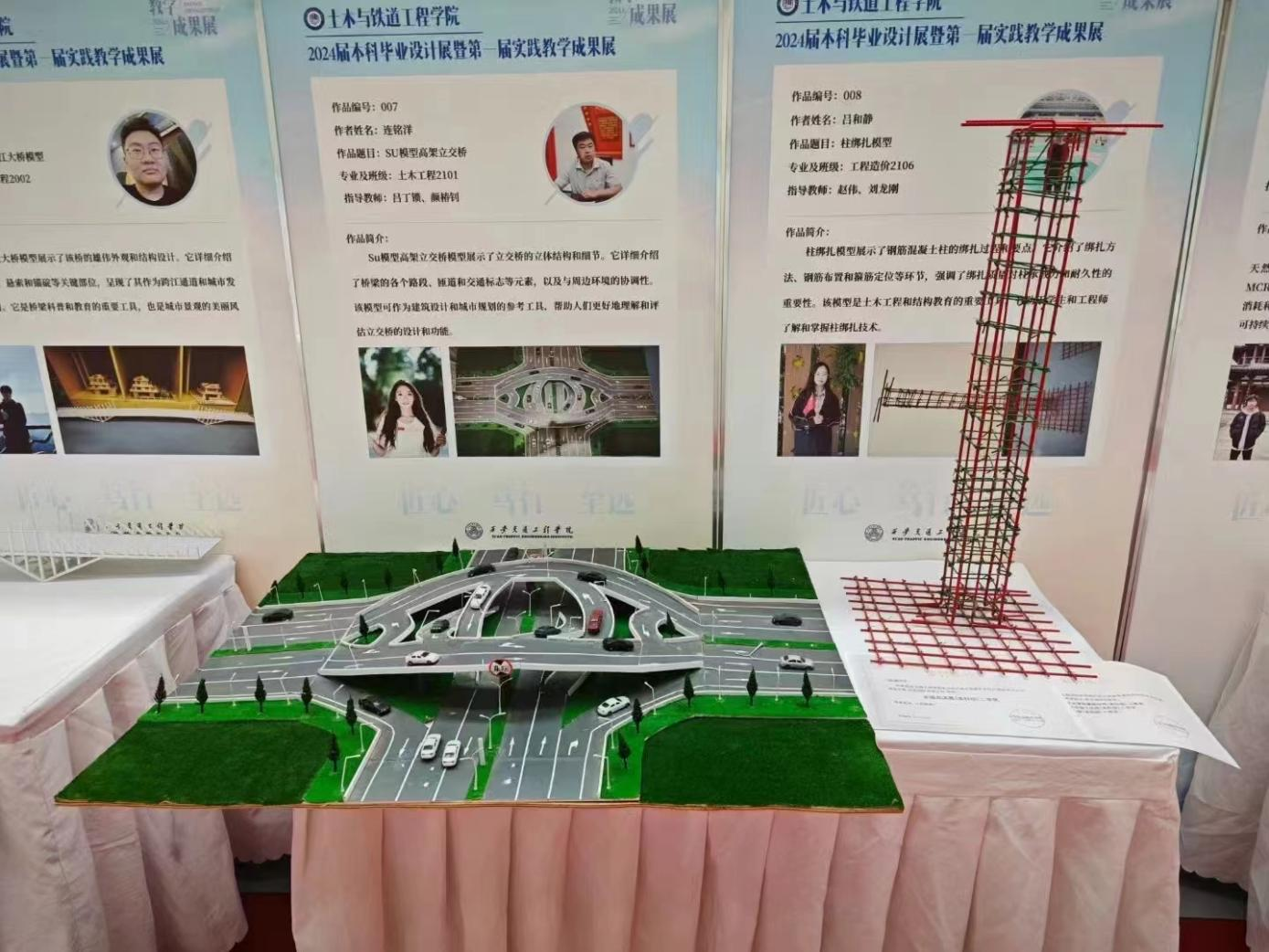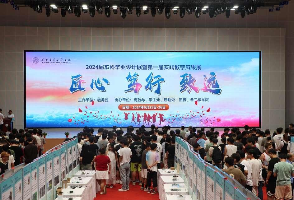 展览现场,一幅幅精美的设计作品、一件件独具匠心的实物模型,无不体现出师生们的灵动巧思与专业水准。机械与电气工程学院的同学们通过运用所学专业知识,结合创新思维和实际操作,从功能、性能、外观设计等方面着手,创作出各种富有创意和实用价值的作品,例如农用机械、汽车防丢报警装置、电动车超速报警器、智能家居控制系统等;土木与铁道工程学院的同学们围绕土木工程和铁道工程的关键问题,提出各种具有实际应用价值的解决方案。例如学生设计的新型桥梁结构,通过对材料、形状和受力特性的深入研究,实现了更高的承载能力和更低的维护成本;交通运输学院的学生们则专注于交通线路的优化设计,通过先进的仿真模拟和数据分析,制定列车运行图编制方案,提高了列车运行的安全性和效率;人文与管理学院的学生们展示了在日常教学活动中的手工作品、剪纸、书法作品等。学生们现场开展的折扇书法、手工编织等活动,激发了师生们的参与兴趣,他们摩拳擦掌、跃跃欲试,活动现场氛围浓厚,观众们沉浸在丰富多彩的视听盛宴之中。