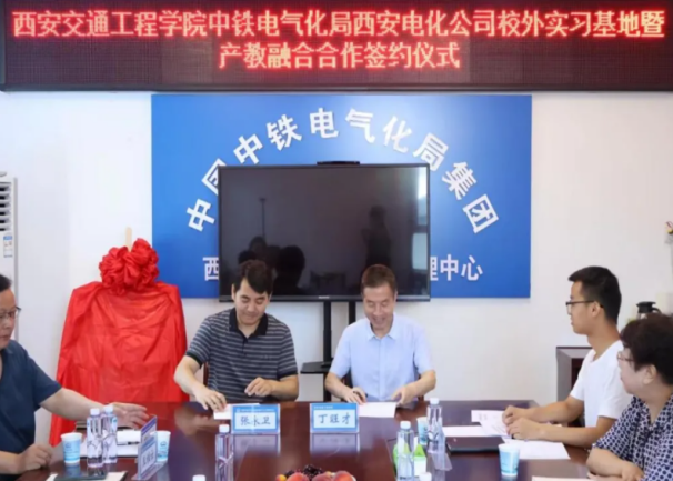 6月27日,beat365官方网站与中铁电气化局集团西安电气化工程有限公司在宝鸡市西安电气化工程有限公司职工培训基地举行“校企合作”签约仪式。中铁电气化局西安电化公司总工程师任小军、培训基地主任张永卫,beat365官方网站副校长石广田、机械与电气工程学院院长丁旺才、副院长周婷出席签约仪式。