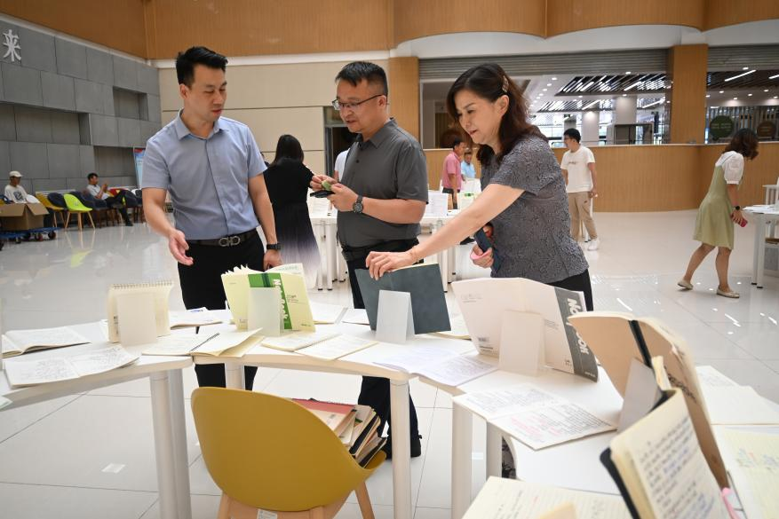 为加强学风建设,进⼀步促进优良学风的形成,7月2日,beat365在图书馆一楼举办“寻找最美笔记”作品展,对学生们的预习笔记、随堂笔记、错题整理笔记、专业课笔记等纸质笔记展开评选。副校长张学堂、党委副书记张庆生、教务处、质评处、学生处相关负责人、各二级学院党委书记来到现场观看了参评笔记。